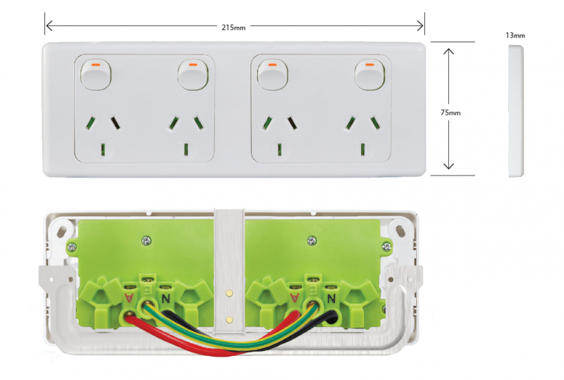 - Pre-wired with a 240mm cable loop for easy installation to suit 1 power circuit