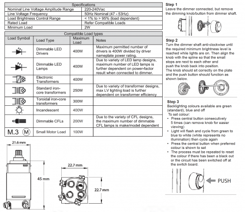 • DIMPR is suitable for use with Australian wall plate apertures including Trader, HPM# & Clipsal*.