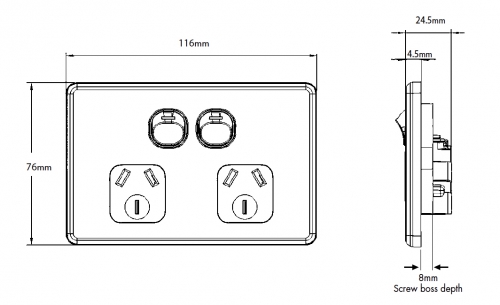 - Fits recessed Australian wall boxes and mounting accessories that use 84mm mounting centres.