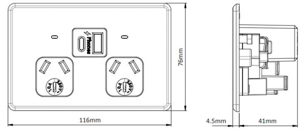 - USB outlets comply with AS/NZS61558.2.16:2010 A1-3.