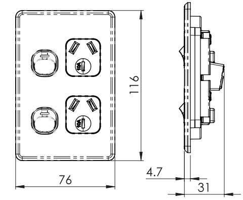 - Fits recessed Australian wall boxes and mounting accessories that use 84mm mounting centres.