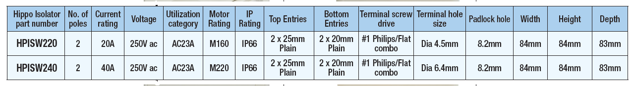 - Improved Double Pole switching mechanism performance and design in comparison to HPSSWCDP220 & HPSSWCDP235.