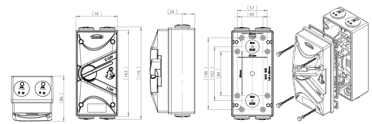 - The Hippo larger enclosures feature twin 25mm threaded entries both top and bottom.