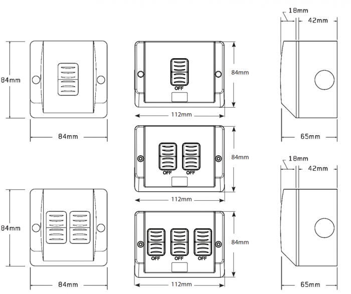 - 16AX/20A 250V~ rated modular weatherproof switches.