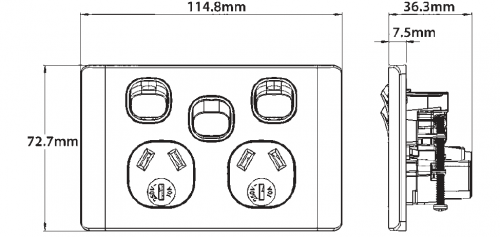 - Fits standard Australian wall boxes and mounting accessories that use 84mm mounting centres.