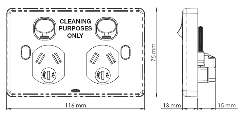 • Fits standard Australian wall boxes and mounting accessories that use 84mm mounting centres.