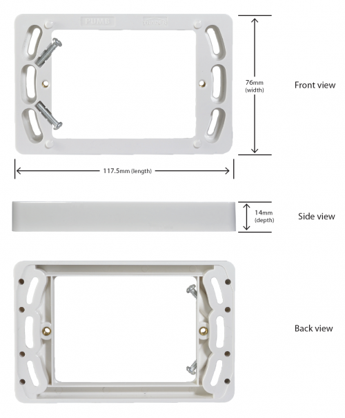 - Overall dimensions (length 117.5mm x width 76mm x depth 14mm).