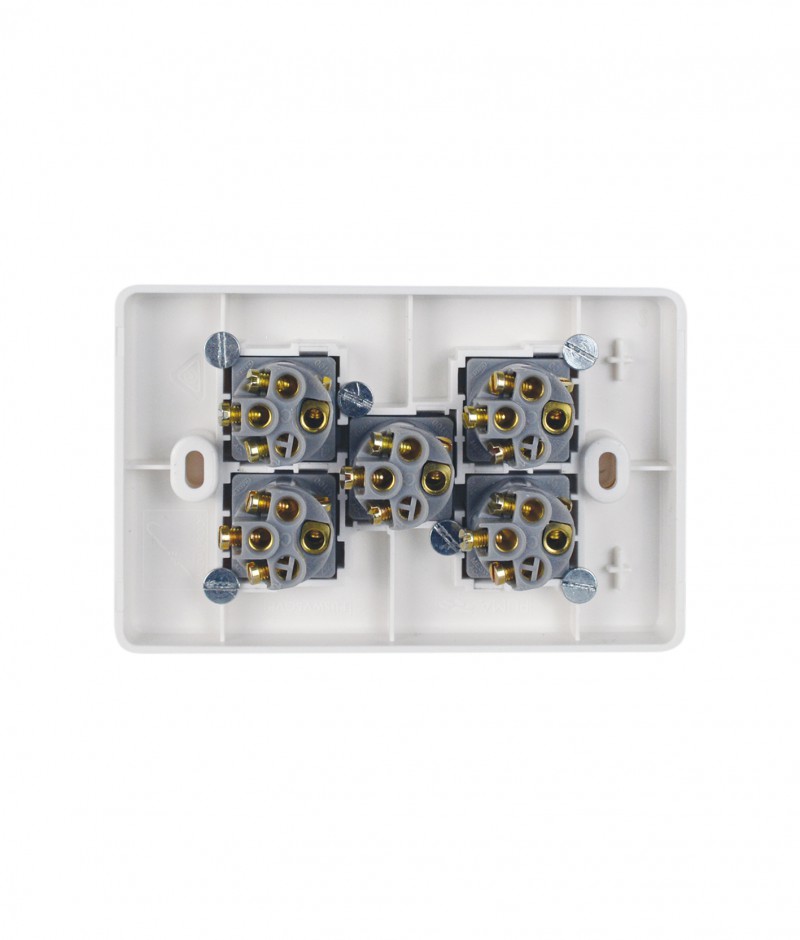 • Uses brass tunnel terminals that have the screws backed out for easier installation of cabling. Switches are two way with looping terminal and suit 4 x 1.5mm2 cabling with 4.1 bore.