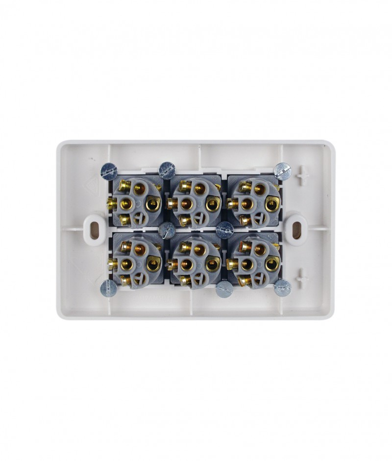 • Uses brass tunnel terminals that have the screws backed out for easier installation of cabling. Switches are two way with looping terminal and suit 4 x 1.5mm2 cabling with 4.1 bore.