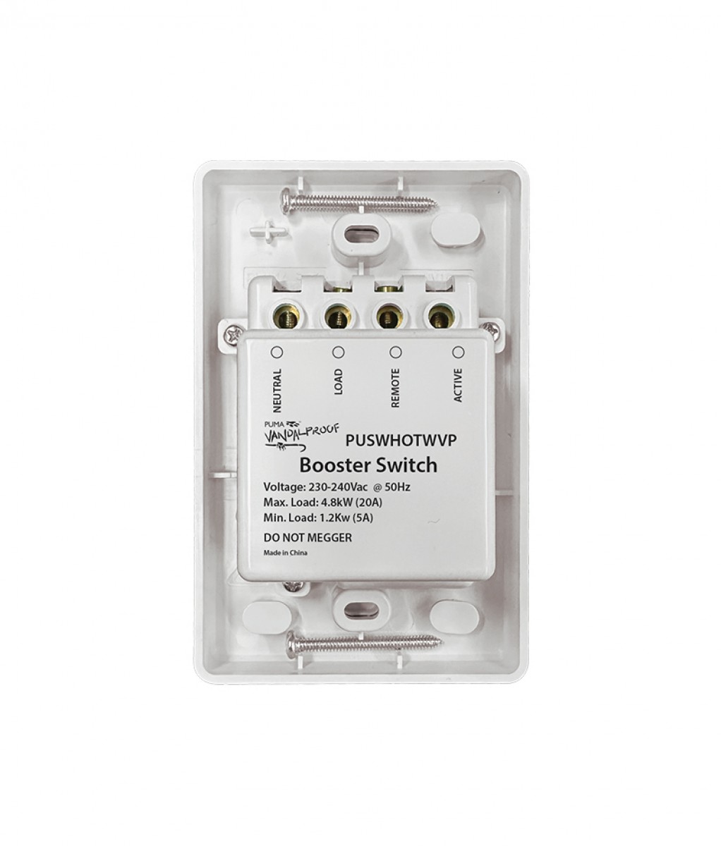 The Trader Hot Water Booster Switch has been designed for use with solar hot water systems up to 20A. Designed as a temporary override for heating solar hot water systems and connected to the booster element inside the hot water system. On overcast, cloudy days the solar hot water system may not heat the water enough to the desired temperature, or in cases where the demand is greater than usual where guests may be visiting and increased usage has exhausted the existing hot water. The system can be boosted and controlled through the thermostat of the hot water system.