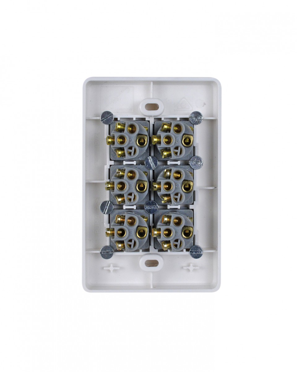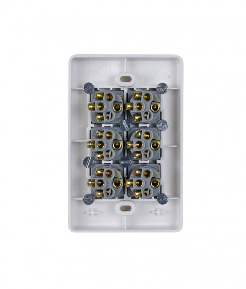 - Uses brass tunnel terminals that have the screws backed out for easier installation of cabling. Switches are two way with looping terminal and suit 4 x 1.5mm2 cabling with 4.1 bore.