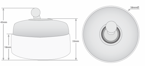 - 58 Diameter, 18mm High Porcelain Base, 45mm Total Height.