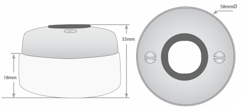 - 58 Diameter, 18mm High Porcelain Base, 55mm Total Height.