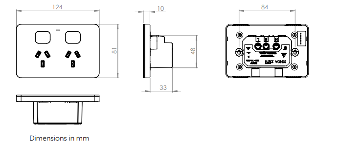 - Fits standard Australian wall boxes and mounting accessories that use 84mm mounting centres.