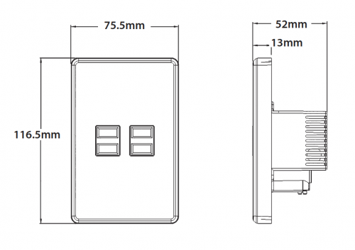 - Fits standard wall boxes and mounting accessories.