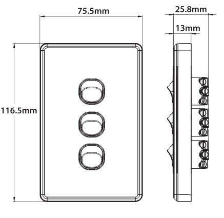 - Switches are rated 10AX/16A 250V~ and approved to AS/NZS3133.