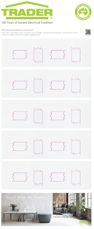 The Trader brand has been a real bonus to the electrical field. Especially, can I highlight the HYPP1GF (surface socket). These are perfect for retrofitting existing lighting where you pull out old downlights or changing over from a batten holder to downlight etc. The terminals are all in a row with a well thought insulation barrier which must be ‘clicked in’ before you can fit the base. Then there’s the ‘easy fit’ base. When I say easy fit, it’s easy to fit and to take off again should you need to. (hopefully no more screwdrivers through my hand trying to remove bottom plates etc). They easily fit through a normal downlight cut out, so you can work from a ladder instead of having to go in the roof, even with a few cables and cable ties attached etc. Circuit identification is becoming more and more important. Trader realise this and have added space on the front of the socket outlet to 2 – IPA labels visible even with a plug in the socket.